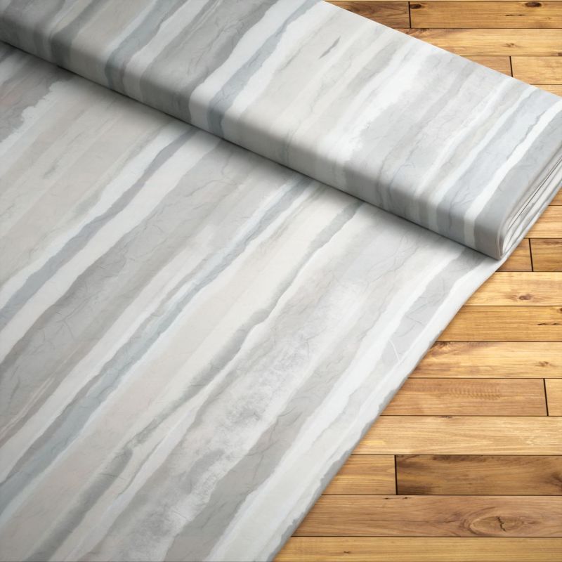 Die unterschiedlich hellen und dunklen Grautöne gestalten in Verbindung mit den Streifen in Weiss und Silber eine zeitlos schöne Deko mit edlem Charme. Locker, leicht und luftig wirkt der Stoff vor allem aufgrund der Transparenz und fügt sich in viele Räume spielend leicht ein. Zarte Pastelltöne und helles Holz sorgen weiterhin für eine harmonische Atmosphäre, die einladend und gemütlich wirkt.