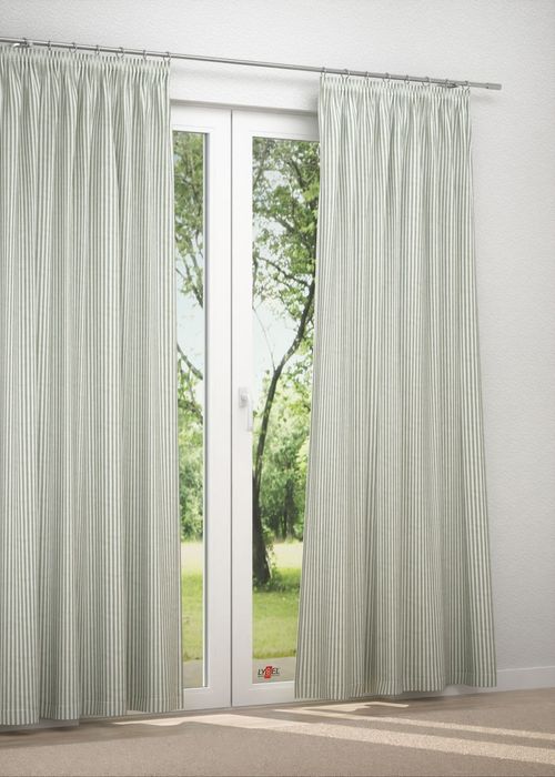 - Ein unkonfektionierter Dekostoff in lindgrün, mit Bleiband.