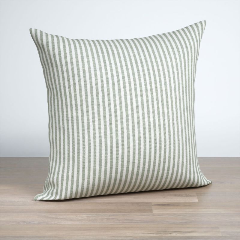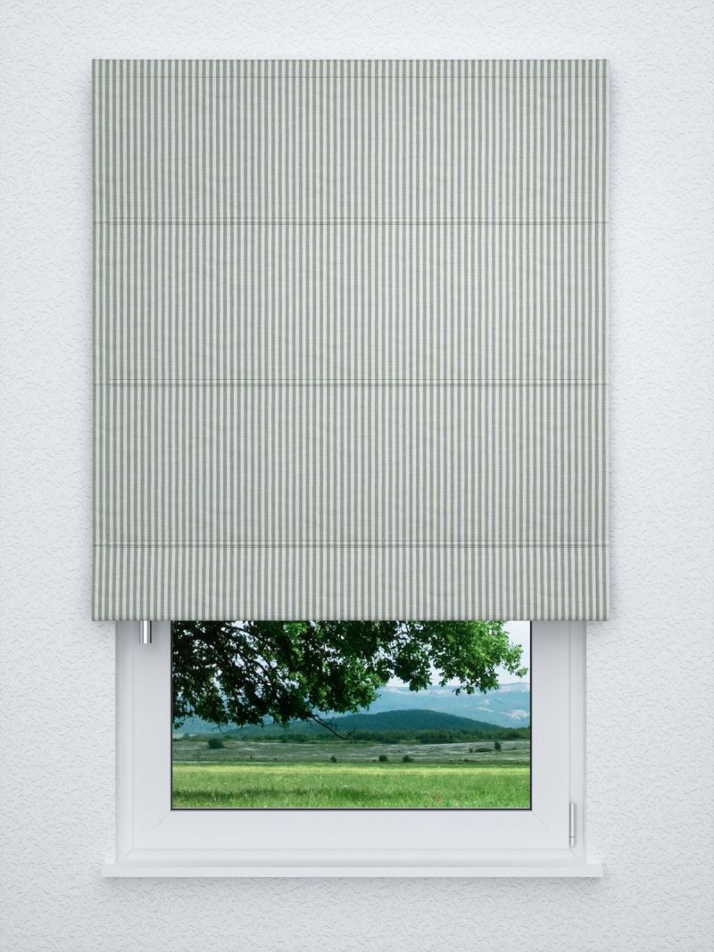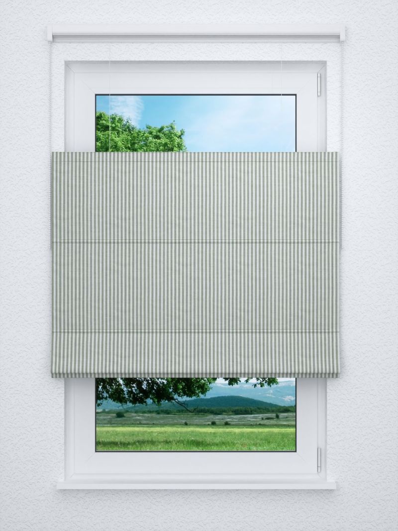 Ein Streifenmuster in Weiss und dunklem Olivgrün ziert diesen Dekostoff, der sich mit weichen Kontrasten und natürlichem Charme in das Ambiente einfügt. Helle Graunuancen, ebenso Deko-Elemente in warm glänzendem Kupfer sowie Möbel aus rötlichem Holz passen hervorragend dazu. Auch das Spiel mit verschiedenen Grüntönen kann sehr reizvoll sein. Als farbige Akzente passen auch Orange, Violett oder dunkles Blau. Mit zarten Rosé- und Nudetönen schaffen Sie ein Ambiente, inspiriert vom Scandi-Boho-Stil.
