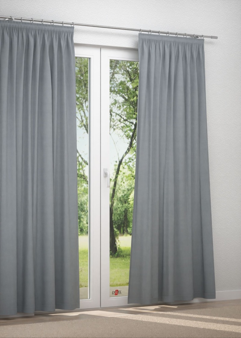 - Ein unkonfektionierter Dekostoff in anthrazit, mit Bleiband.
