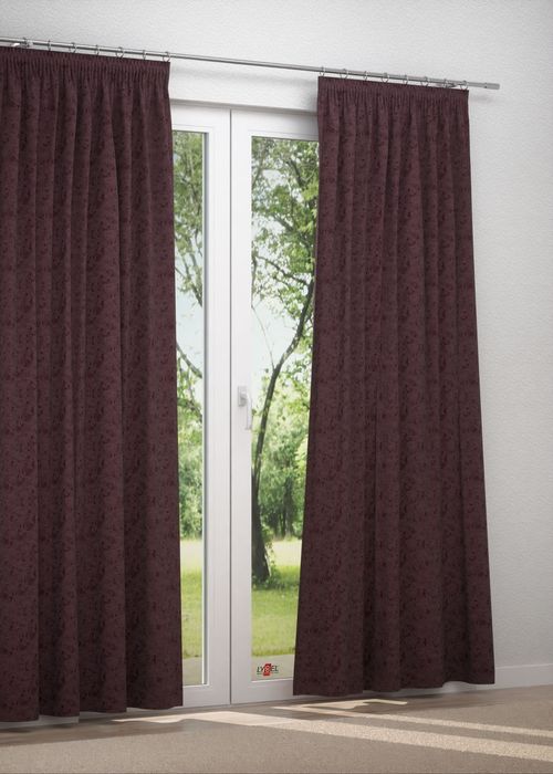 - Ein unkonfektionierter Dekostoff in aubergine, ohne Bleiband.