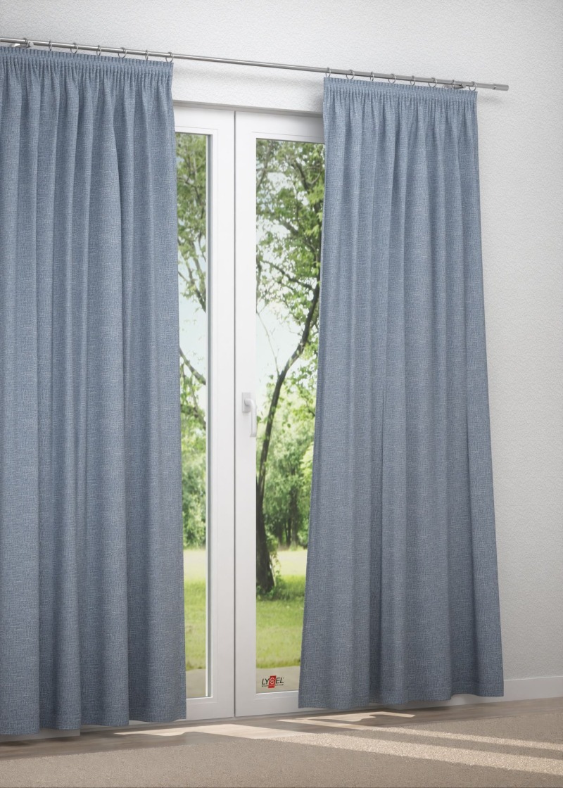 - Ein unkonfektionierter Dekostoff in hellblau, ohne Bleiband.