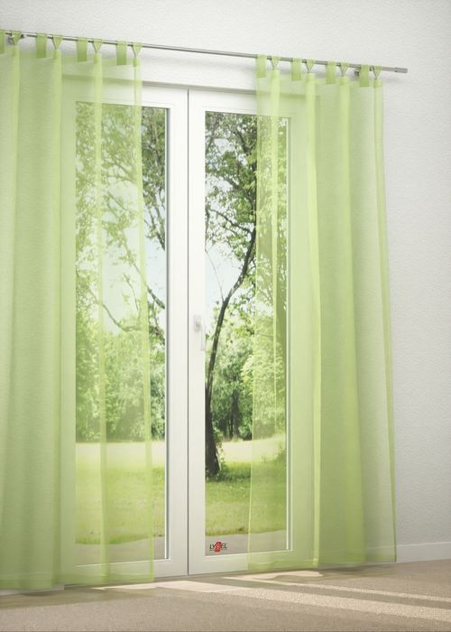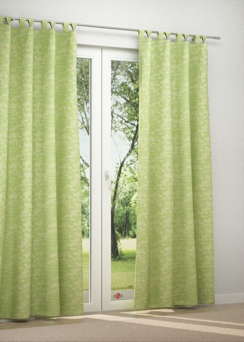 - Ein unkonfektionierter Gardinenstoff in maigrün ohne Bleiband.