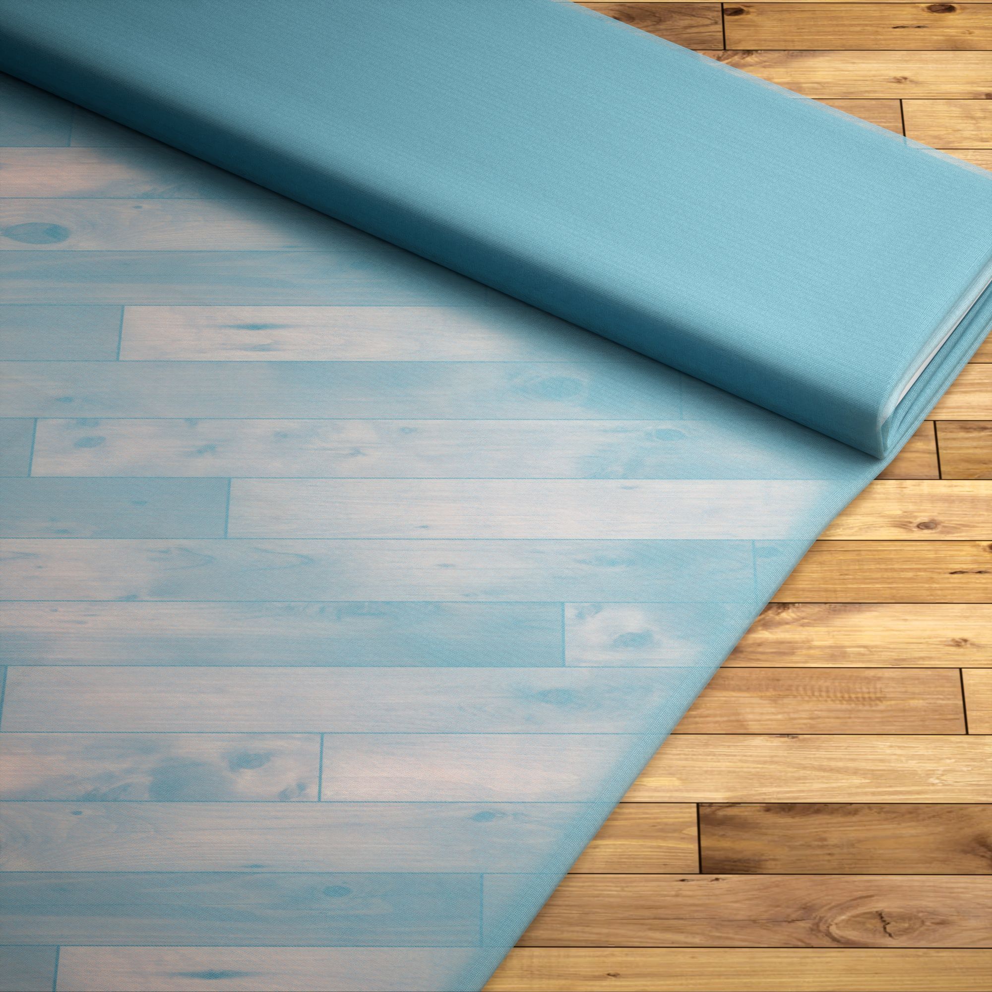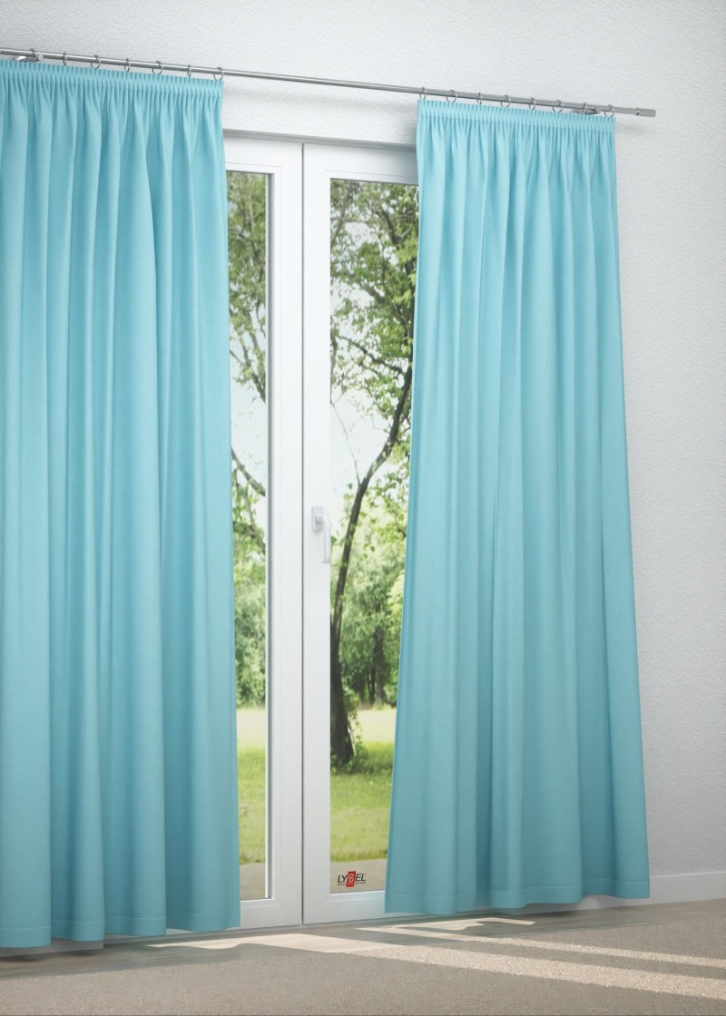 - Ein unkonfektionierter Gardinenstoff in wasserblau ohne Bleiband.