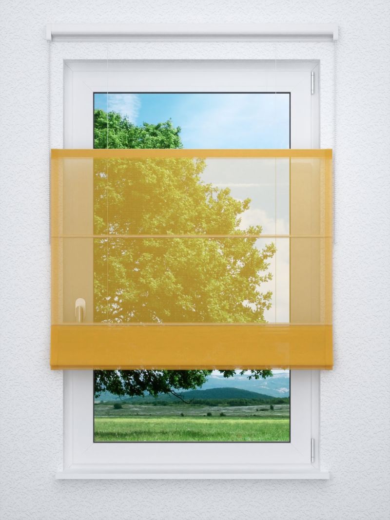• Ein unkonfektionierter Gardinenstoff in zinkgelb ohne Bleiband.