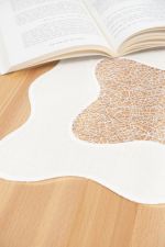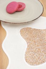Mit einer fliessenden wellenförmigen Umrandung ist diese Tischdeko gestaltet. Die grossen Wellen als Rahmen sorgen für eine federleichte, unbeschwerte Atmosphäre und tauchen im Inneren als Umrahmung des Fadengewirrs erneut auf. Innerhalb der Fäden ist zu erkennen, dass sich einige von ihnen durch die Gestaltung in einer anderen Farbe dezent abheben. Die Tischdeko von Plauener Spitze® kann als Tischdecke, Tischläufer, Tischband oder kleines Deckchen im Shop bestellt werden. Das Spiel mit Transparenzen in Form eines blickdichten Rahmens und eines durchsichtigen Fadengewirrs im Inneren sowie die Wellenform machen hier den Reiz der Deko aus.
