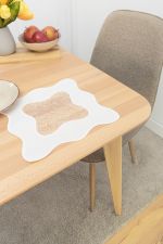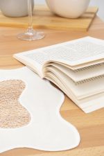 Diese Tischdeko ist in einem milden Weisston gestaltet, der hier als Ecru bezeichnet wird und den fliessenden sowie luftigen Charakter der wellenförmigen Deko erneut betont. Hinzukommt, dass einige der Fäden einen edlen Bronzeton erkennen lassen. Auf einen Tisch mit schöner Holzmaserung oder einer Tischdeko mit natürlichen Elementen passt dieses Modell besonders gut. Verwandte Beige- und Brauntöne sowie sattes Rot setzen es stimmig in Szene.