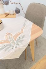 Ein milder Weisston namens Ecru ziert diesen Tischdeckenstoff. Mit grünen und goldenen Akzenten passt dieses Modell perfekt in die Weihnachtszeit. Besonders die schönen goldenen Highlights in den Mustern und das Design der Kerze ziehen die Aufmerksamkeit des Betrachters auf sich. Sie können dieses abwechslungsreiche und detailverliebte Modell wunderbar mit weiteren Weihnachtsfarben wie Rot und Grün ergänzen sowie den Tisch mit goldenen Accessoires schmücken.