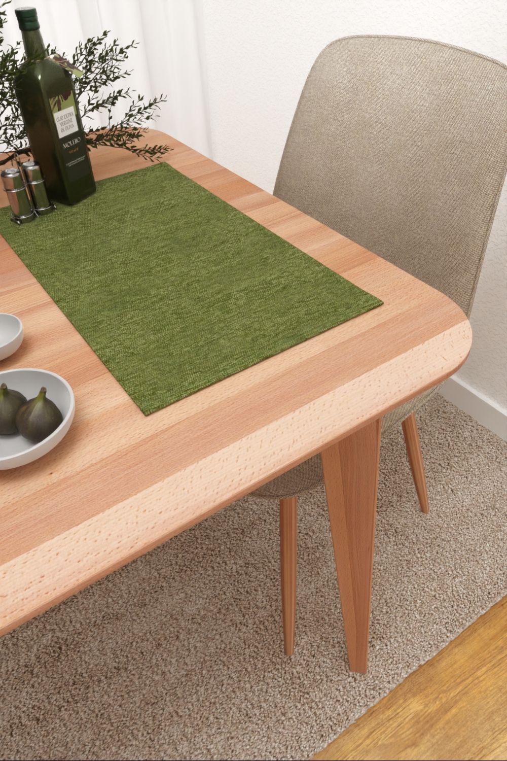 Dieses dunkle und zugleich sanfte Olivgrün lässt eine schöne Gemütlichkeit entstehen. Der warme Grünton unterstreicht die rustikal angehauchte Struktur des Stoffes und versteht sich mit sanften Weisstönen, Accessoires in Kupfer sowie einem Mobiliar aus hellem oder rötlichem Holz besonders gut. Ausserdem bieten sich farbige Akzente in Orange sowie dunklen Grüntönen, Nachtblau und Anthrazit an, die für ein besonderes und individuelles Flair sorgen.