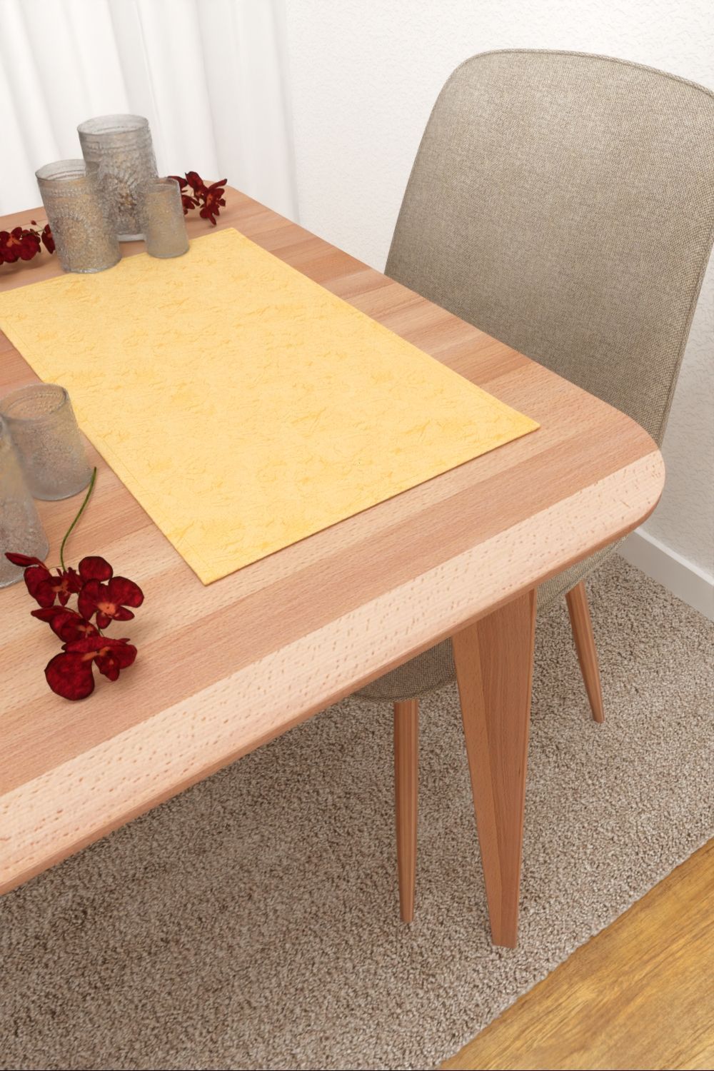 In dem milden Gelbton kann dieser Stoff je nach Kombination sowohl die Leichtigkeit des Frühlings als auch das entspannte Gefühl des Sommers transportieren. Durch das Zusammenspiel mit naturnahen Erdfarben, modernen Grautönen und Akzenten in frischem Grün, entsteht ein harmonisches Ambiente, das die Positivität und Freundlichkeit dieser Farbe im ganzen Raum wirken lässt.