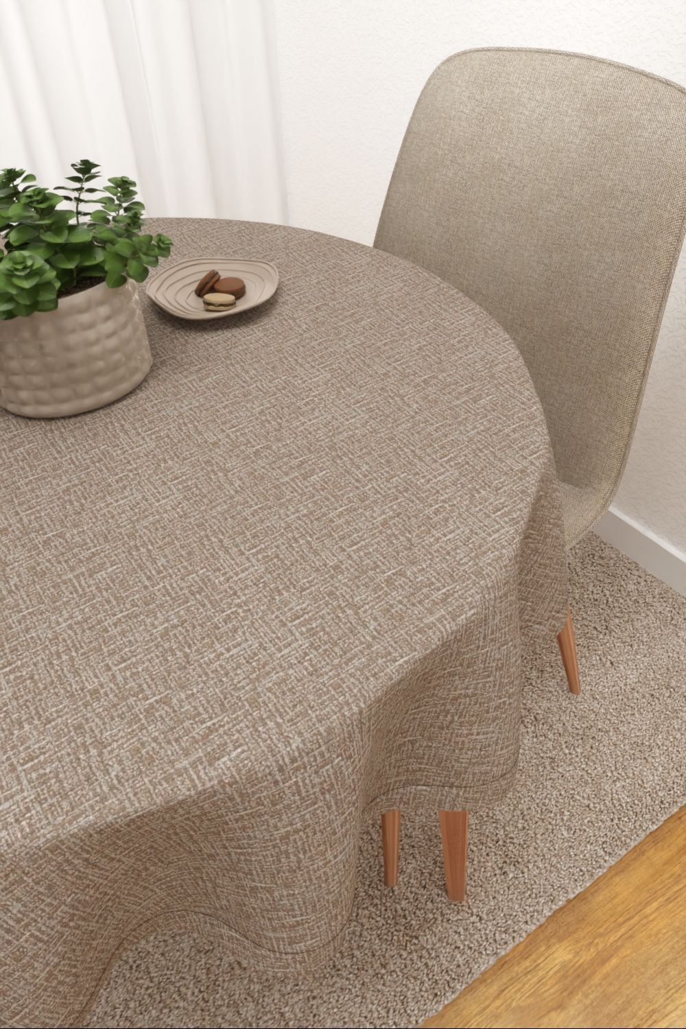 Tischdecke rund von Lysel - Bacalar #3J in hellbraun