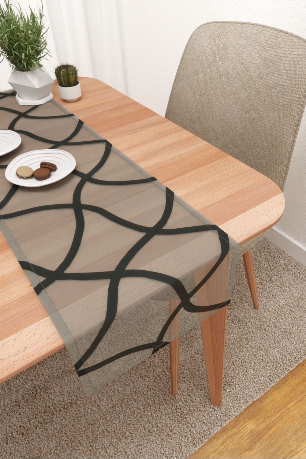 Hier ist der gesamte Stoff mit einem Muster in Ausbrenner-Optik gestaltet. Die halbtransparenten, geschwungenen Linien sind das entscheidende Designelement und nehmen die gesamte Oberfläche ein. Durch die Schnittpunkte gibt sich ein an ein geflochtenes Netz erinnerndes Design zu erkennen. Entfernt kann es auch an vom Wind bewegtes Wasser erinnern. Die unterschiedlichen Transparenzen lassen lebendige und ausdrucksstarke Effekte entstehen, die besonders bei einer Fensterdeko ihre ganze Wirkung entfalten. Nutzen Sie den Konfigurator, um beispielsweise ein Raffrollo oder einen Gardinenschal nach Mass individuell zusammenzustellen. Dabei können Sie auch Einfluss auf den oberen Abschluss, also die Aufhängung, nehmen. Als Tischdecke oder Tischläufer eingesetzt lässt dieses Modell die Oberfläche des Tisches bzw. die Optik des darunterliegenden Stoffes zum Vorschein kommen. Möchten Sie eigene kreative Ideen umsetzen, bestellen Sie die Meterware.