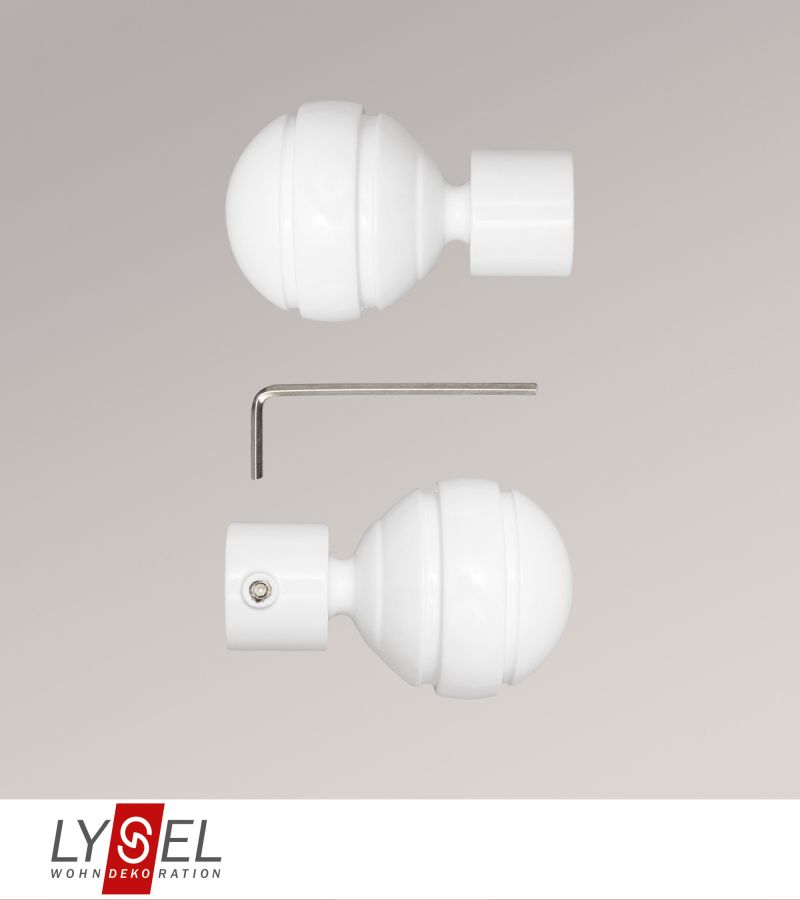 Diese kugelförmigen Endstücke aus Metall eignen sich für Opal Gardinenstangen sowie andere Gardinenstangen mit einem Durchmesser von 20 mm. Vielleicht sind die kugelförmigen Endstücke von einem antiken Türknauf inspiriert. Sie werden durch die zwei markanten Einkerbungen in drei Bereiche unterteilt. Sind im Interieur Unikate vom Flohmarkt oder aus dem Antiquitätengeschäft vorhanden, passen diese Endstücke besonders gut. Mit dem beiliegenden Innensechskantschlüssel werden sie fixiert. Auf dieselbe Weise können sie wieder entfernt werden.