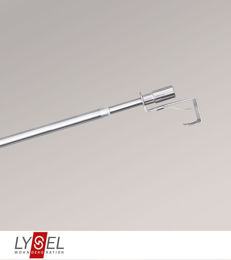 - Eine Klemmvitragenstange in Edelstahl-Optik für Scheibengardinen.