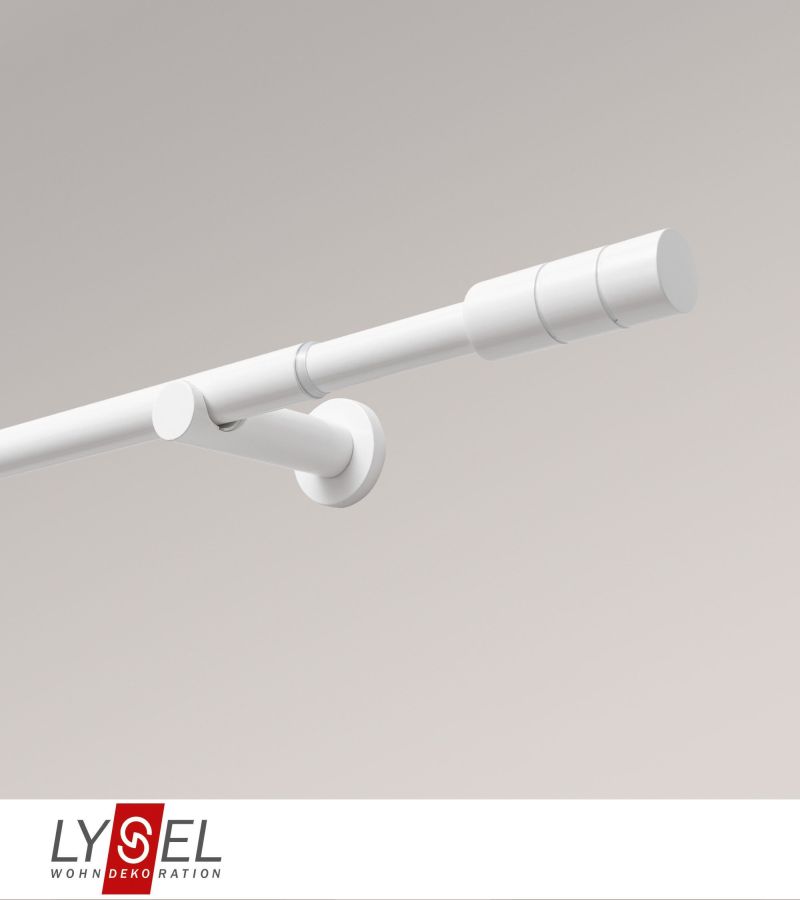 Dieses einläufige Gardinenstangen Set aus robustem Metall überzeugt mit klaren Linien und schlichter Eleganz, moderner Form und hochwertiger Optik. Die runde Gardinenstange mit einem Durchmesser von 19 mm ist ausziehbar und kann auf die gewünschte Länge eingestellt werden, sorgt somit für mehr Flexibilität. Die offenen Wandträger mit Metallmontageplatte werden inkl. Befestigungsmaterial zum Schrauben geliefert. Die Gardinenstange wird in die halbrunde Öffnung eingeklickt und ist dann etwa 7,5 cm von der Wand entfernt. Hier sind die Endstücke als Zylinder gestaltet und zusätzlich mit zwei ringförmigen Einkerbungen verziert. Setzen Sie Ihre Schlaufen- oder Ösenschals wirkungsvoll in Szene. Praktische Gardinenringe mit Faltenlegehaken sind separat erhältlich.