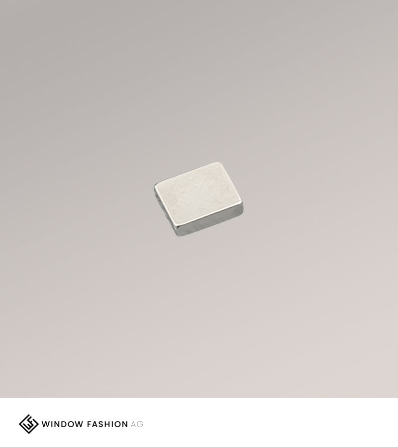 Der Magnet wird eingesetzt, um die ersten bzw. letzten Paneelwagen am Schienenende zu fixieren. Dazu werden sie in die Endkappe der Vorhangschienen eingesetzt, deren Stoffbahnen durch Mitnehmer verknüpft sind. Hier erfüllen sie die Funktion, beim Zuziehen des Vorhangs die Position des hintersten Paneelwagens an der gegenüberliegenden Seite zu halten.