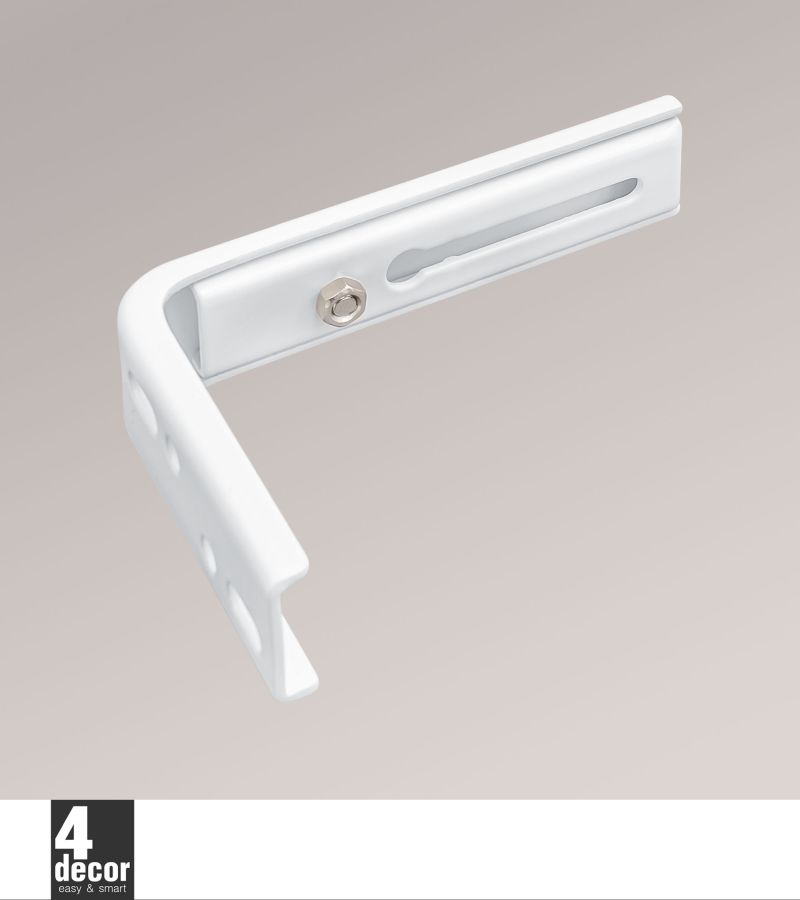 Mit den verstellbaren Wandwinkeln können Sie Ihren Flächenvorhang bzw. Ihre Schiebegardine direkt vor dem Fenster oder in der Fensternische befestigen. Durch die Verstellbarkeit und die damit verbundene Flexibilität können Sie hervorstehende Fensterbänke oder Fenster, die sich über einer Heizung befinden mit Leichtigkeit umspielen und die Stoffbahnen elegant am herabfallen lassen. Die zur Montage benötigten Schrauben und Muntern sind ebenfalls im Lieferumfang enthalten.
